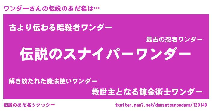 | 女子向けラノベタイトル風あだ名 | 『ワンダーなんてお断りですっ。』 |