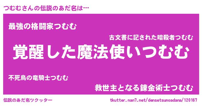 | ヒーロー風カッコイイあだ名 | 『天弓騎士ツム』『ウルトラつむむマン』 |