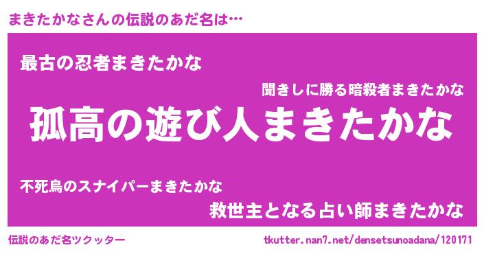 | ポケモン風あだ名 | 『マキゴンZ』『ヒマキタカナ』 |