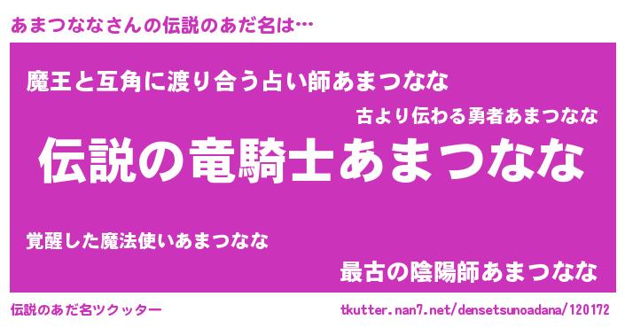 | 女子向けラノベタイトル風あだ名 | 『(仮)あまつななのやんごとなき事情』 |