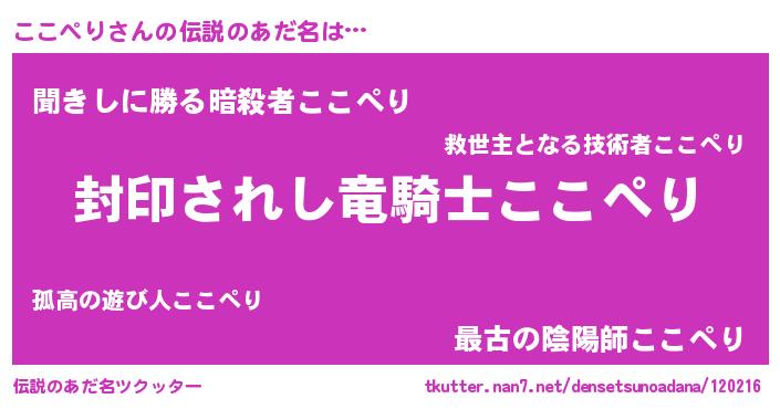 | 意味不明あだ名 | 『住所不定無職ここぺり(12歳)』 |