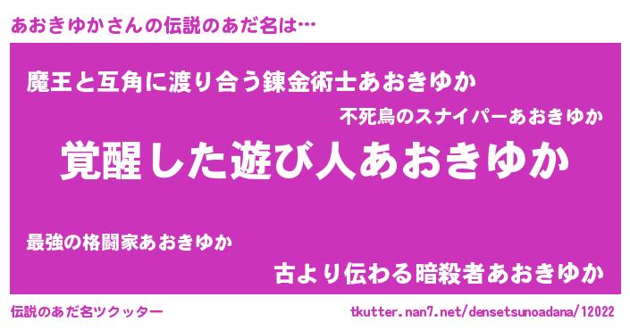 | 意味不明あだ名 | 『とにかく怪しいあおきゆか』 |