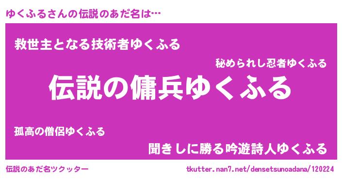 | 男性向けラノベタイトル風あだ名 | 『ゆくふるの憂鬱』『ユクフルスレイヤー』 |