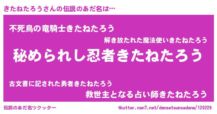 | 恥ずかしいあだ名 | 『きたっちょ』『キタネタロウデラックス』 |