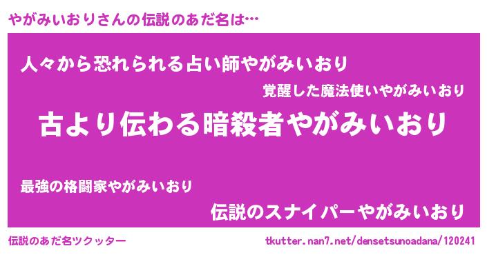 | ヒーロー風カッコイイあだ名 | 『サイバー戦士ヤガミイオリ』 |