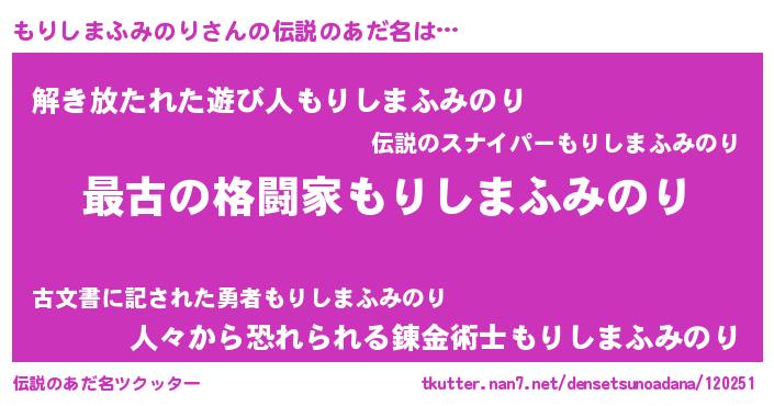 | 意味不明あだ名 | 『住所不定無職もりしまふみのり(10歳)』 |