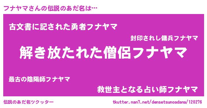 | ヘコむあだ名 | 『フナっぺ』『フナヤマ(遠い目)』 |