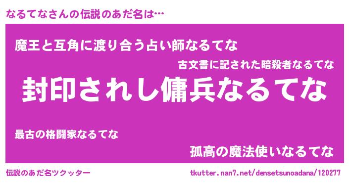 | 意味不明あだ名 | 『住所不定無職なるてな(47歳)』 |