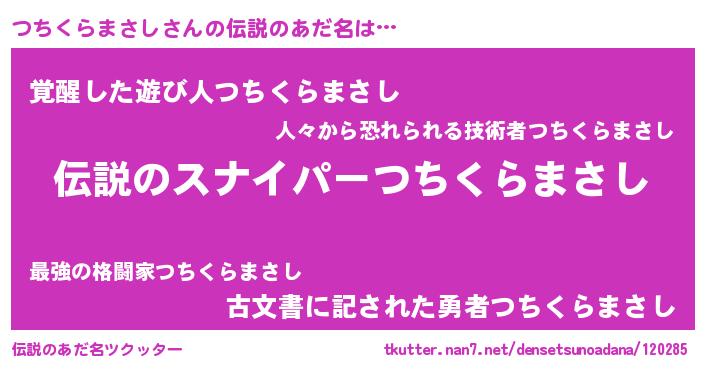 | 胡散臭い通販商品みたいなあだ名 | 『必ず成功する霊験あらたかなお札…その名も「つちくらまさし」』 |