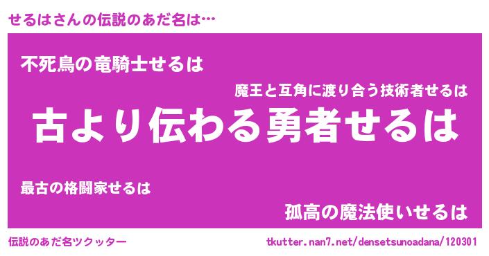 | ヘコむあだ名 | 『せるは(遠い目)』『せるにー』 |