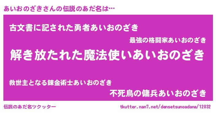 | ヘコむあだ名 | 『あいお』『あいおのざき(遠い目)』 |