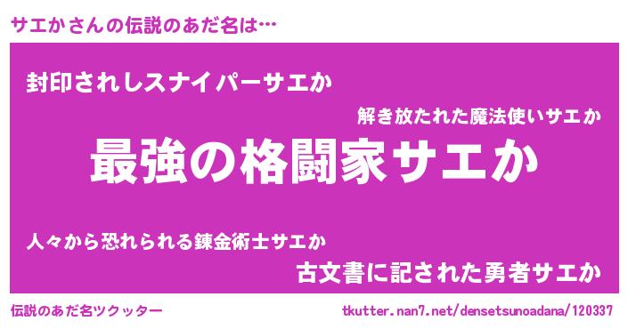 | ポケモン風あだ名 | 『サエカダネ』『サーエイ』 |