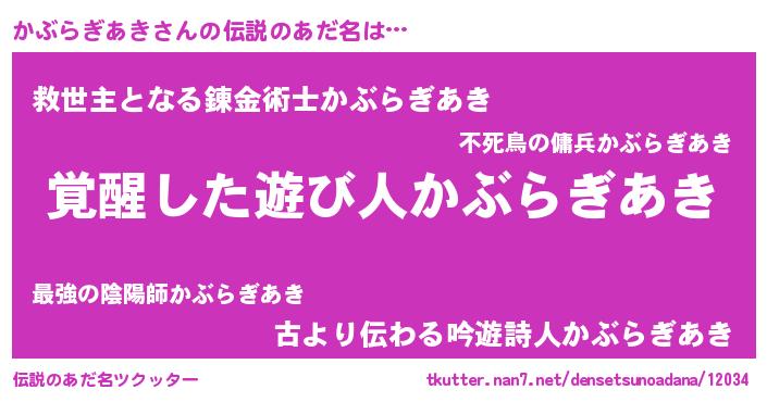 | 男性向けラノベタイトル風あだ名 | 『かぶらぎあきに滅ぼされるだけの簡単なお仕事です』 |