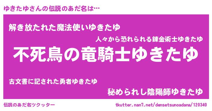 | 女子向けラノベタイトル風あだ名 | 『乙女ゲームの破滅フラグしかない悪役ゆきたゆに転生してしまった…』 |
