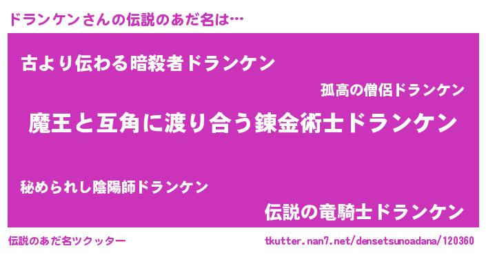 | ヒーロー風カッコイイあだ名 | 『愛の使者ドランケン』『ネオドランケン』 |