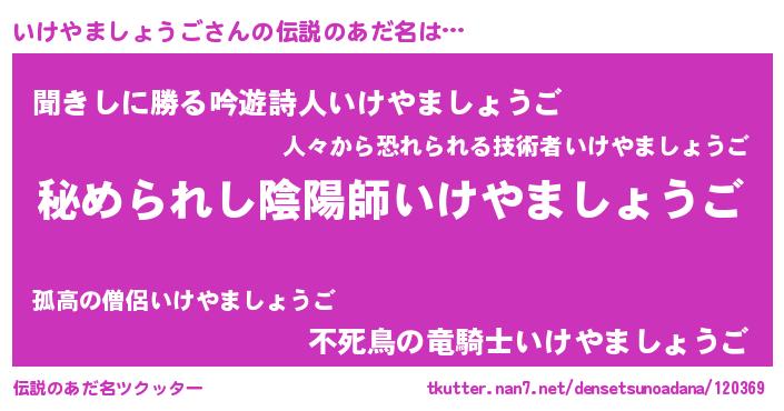 | ファンタジー風あだ名 | 『エターナルイケヤマショウゴー』 |