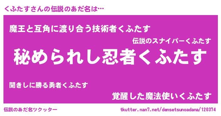 | ヘコむあだ名 | 『つくし』『くふお』『くふにー』 |