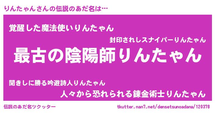 | 男性向けラノベタイトル風あだ名 | 『転生したらりんたゃんだった件』 |