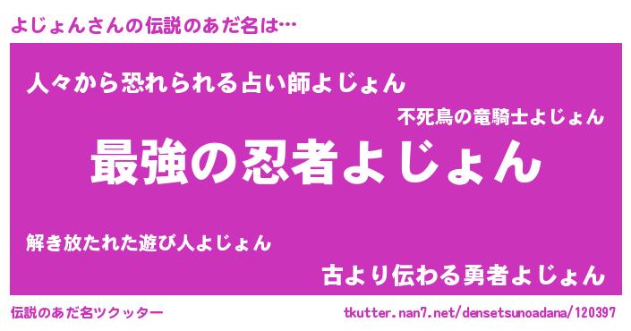 | 意味不明あだ名 | 『よじょんフォーエバー』『自称よじょん』 |