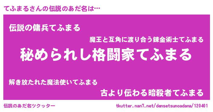 | 意味不明あだ名 | 『てふまるフォーエバー』 |