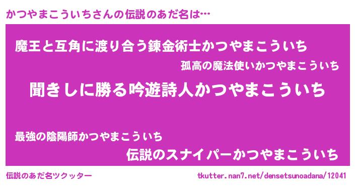 | 意味不明あだ名 | 『永久保存かつやまこういち』 |