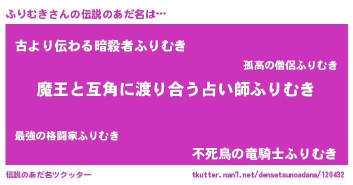 | 意味不明あだ名 | 『たけのこ科ふりむき属』『自称ふりむき』 |