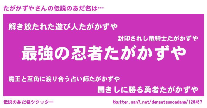 | 意味不明あだ名 | 『たがかずやフォーエバー』 |