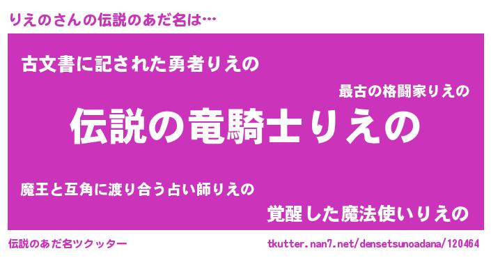 | 意味不明あだ名 | 『住所不定無職りえの(9歳)』『自称りえの』 |
