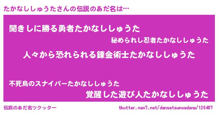 | 意味不明あだ名 | 『眠気覚ましガムたかなししゅうた味』 |