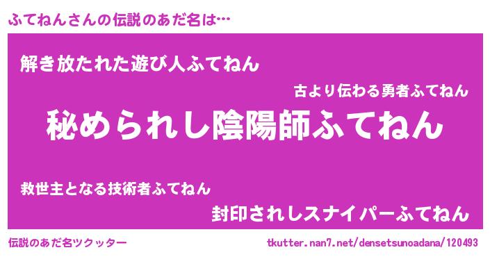 | 男性向けラノベタイトル風あだ名 | 『やはりふてねんの青春ラブコメはまちがっている 』 |