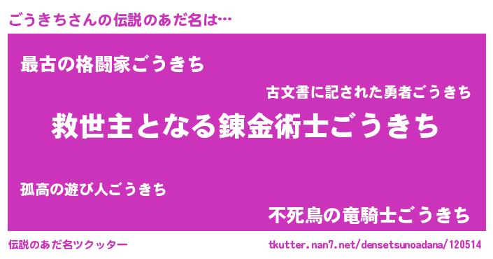 | 意味不明あだ名 | 『つくし科ごうきち属』『自称ごうきち』 |