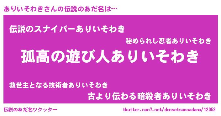 | 意味不明あだ名 | 『自称ありいそわき』 |
