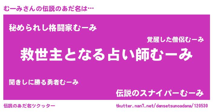 | 意味不明あだ名 | 『眠気覚ましガムむーみ味』『自称むーみ』 |