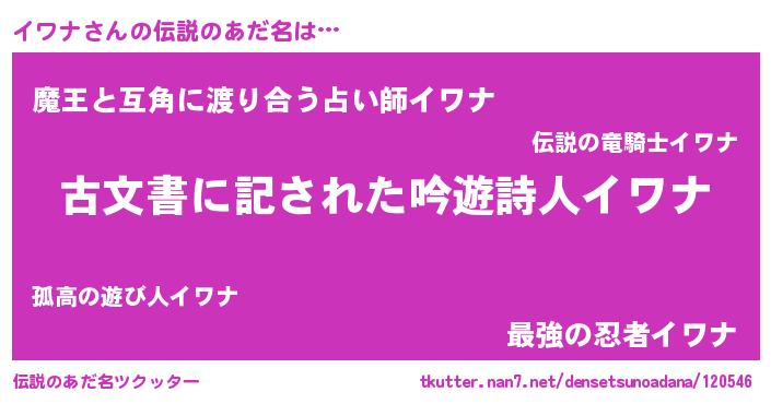 | ファンタジー風あだ名 | 『イワディッシュ』『クインイット』 |
