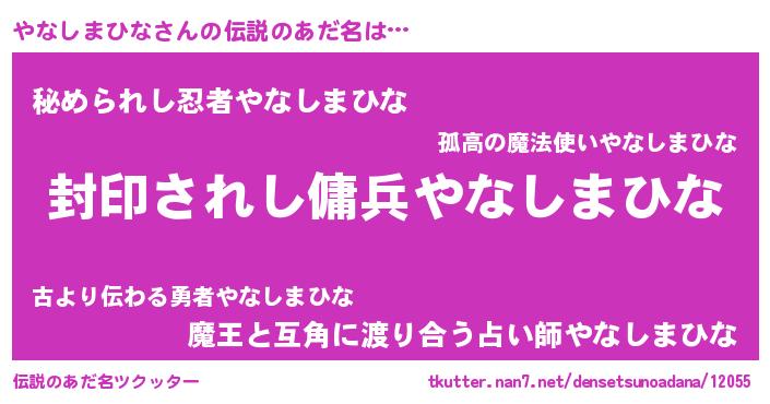 | 胡散臭い通販商品みたいなあだ名 | 『億万長者になれる水晶球…その名も「やなしまひな」』 |