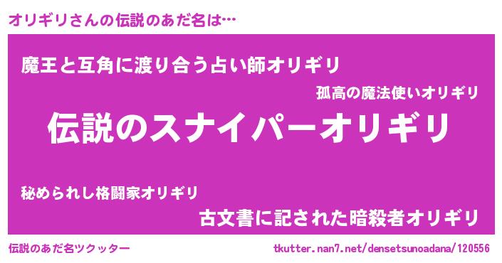 | ヒーロー風カッコイイあだ名 | 『スーパーオリギリ』『ネオオリギリ』 |