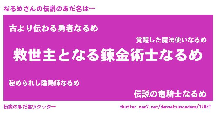 | ヒーロー風カッコイイあだ名 | 『仮面ナルダー』『愛の使者なるめ』 |