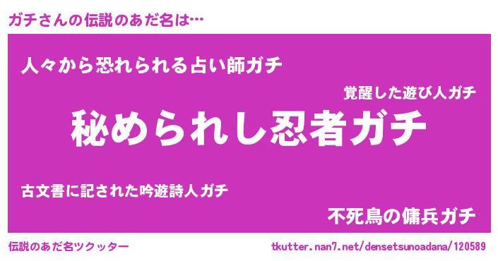 | ファンタジー風あだ名 | 『ゼガチトゥ』『エターナルガチー』 |