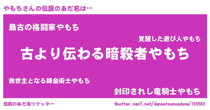 | 意味不明あだ名 | 『永久保存やもち』『自称やもち』 |