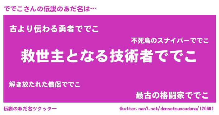 | 意味不明あだ名 | 『自称ででこ』『住所不定無職ででこ(11歳)』 |