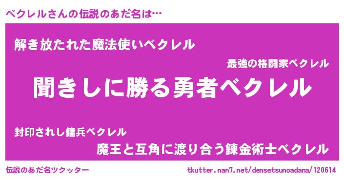 | 男性向けラノベタイトル風あだ名 | 『ベクレルスレイヤー』 |