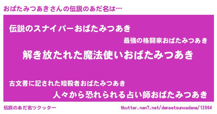 | 意味不明あだ名 | 『自称おばたみつあき』 |