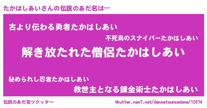 | 意味不明あだ名 | 『とにかく怪しいたかはしあい』 |