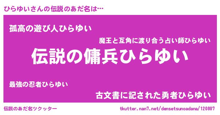 | ヒーロー風カッコイイあだ名 | 『スーパーヒラユイ』『最強戦士ヒラユイ』 |