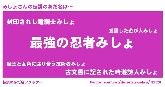 意味不明あだ名 | 『みしょフォーエバー』『自称みしょ』 |