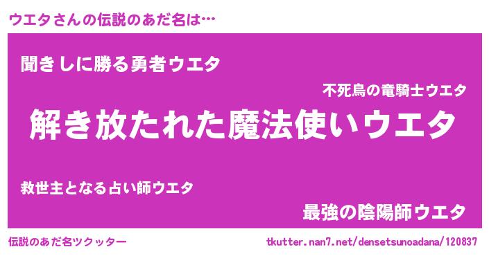| 胡散臭い通販商品みたいなあだ名 | 『伝統あるサプリメント…その名も「ウエタ」』 |