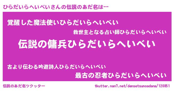 | 胡散臭い通販商品みたいなあだ名 | 『必ず成功する水晶球…その名も「ひらだいらへいべい」』 |