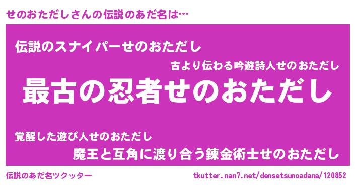 男性向けラノベタイトル風あだ名 | 『魔弾の王とせのおただし』 |