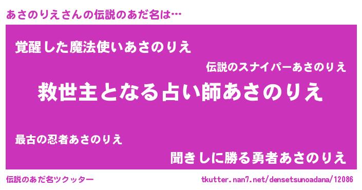| ヒーロー風カッコイイあだ名 | 『天空の使者あさのりえ』『天弓騎士アサ』 |