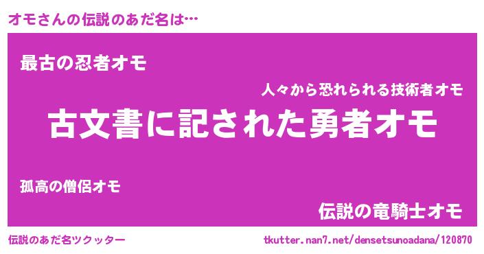 | ヒーロー風カッコイイあだ名 | 『ネオオモ』『サイバー戦士オモ』 |